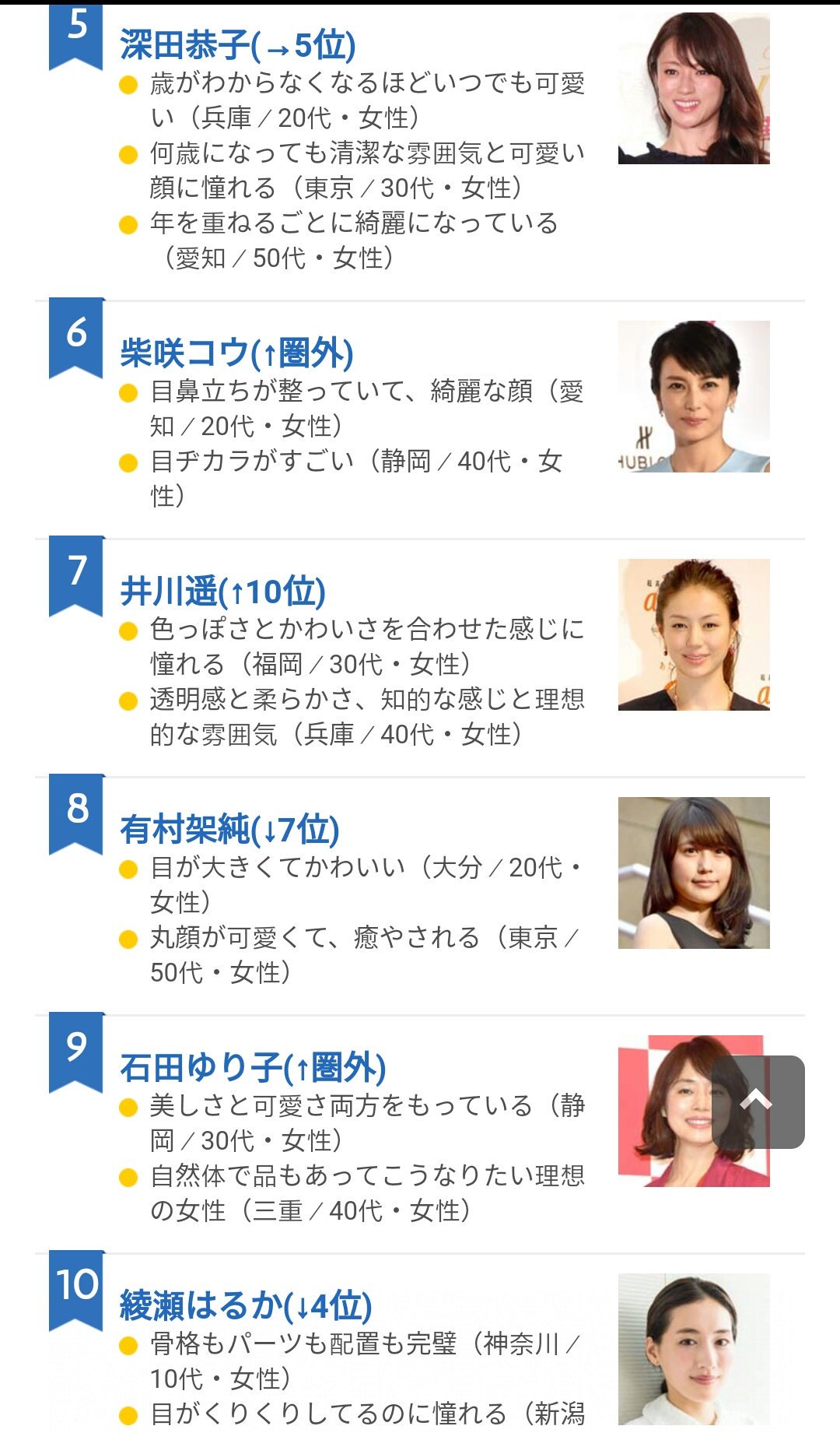 アイリン Naritai Kao Ranking By Oricon News Face That I Want 1 Aragakiyui 2 Kitagawakeiko 3 Ishiharasatomi 4 Nozomisasaki 5 Fukadakyoko 6 Shibasakikou 7 Igawaharuka 8 Kasumiarimura 9 Ishidayuriko 10 Harukaayase